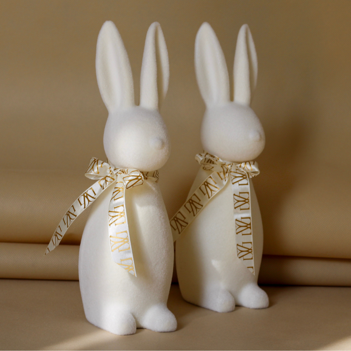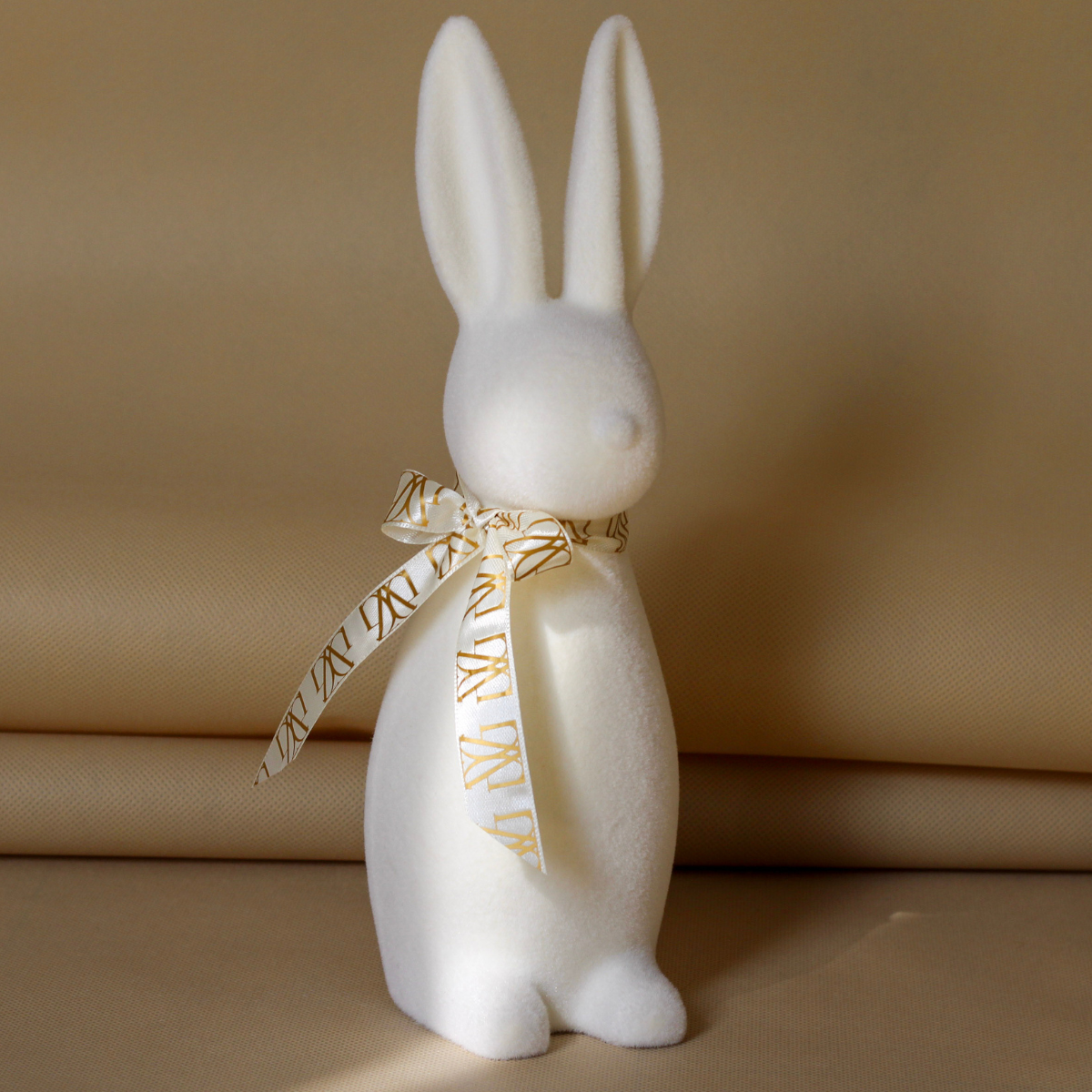 Elegancka dekoracja wielkanocna w formie flokowanego zająca w kolorze kremowym. Figurka charakteryzuje się przyjemną w dotyku, welurową strukturą oraz klasycznym designem, który idealnie komponuje się z nowoczesnymi i tradycyjnymi wnętrzami.